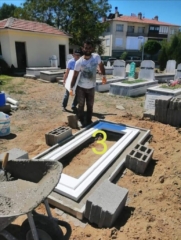 MEZARLARIMIZ; BEYAZ MOZAİK, SÜPER BEYAZ ÇİMENTO ve 8LİK DEMİR İLE YAPILMAKTADIR.